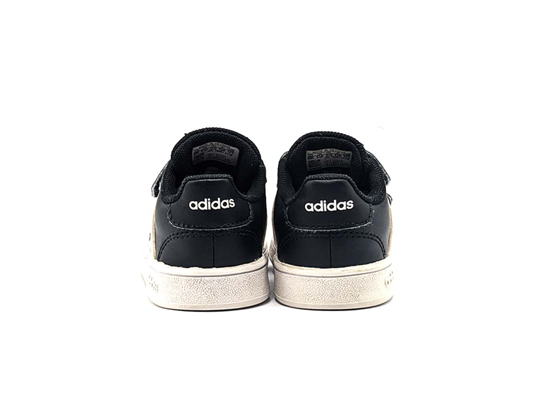 The adidas Court Velcro is a sporty and stylish shoe designed for infants. It features a durable synthetic leather upper with a hook-and-loop closure for easy on and off. The soft textile lining provides comfort and the flexible rubber outsole allows for natural movement. The iconic adidas stripes and logo complete the look.