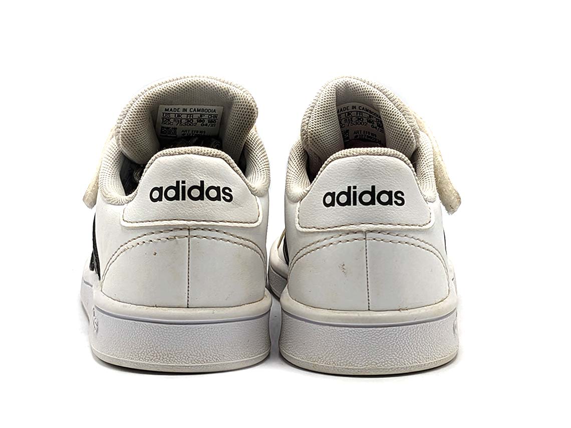 The Adidas Grand Court is a classic tennis-style shoe that features a sleek and versatile design. It has a synthetic leather upper with the iconic Adidas 3-stripes branding on the sides, and a comfortable textile lining. The shoe also features a durable rubber outsole and a cushioned insole for all-day comfort. It's a perfect shoe for everyday wear, both on and off the court.