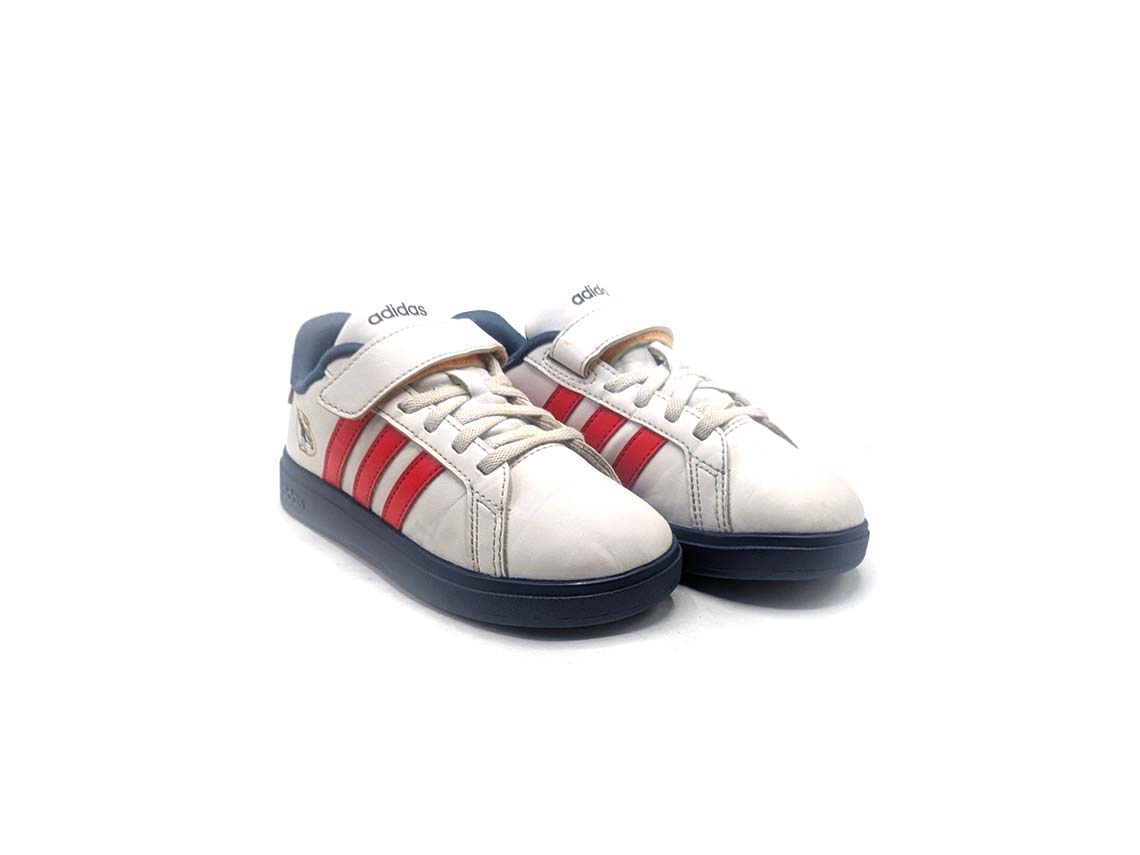 Introducing the Adidas Grand Court, a timeless sneaker inspired by classic tennis style. Crafted with a durable synthetic leather upper and featuring iconic Adidas 3-Stripes branding, these shoes offer a clean and versatile look. With their cushioned sockliner and rubber cupsole, they provide comfort and traction for everyday wear. Step into court-inspired fashion with the Adidas Grand Court, perfect for adding a touch of sporty sophistication to your outfit.