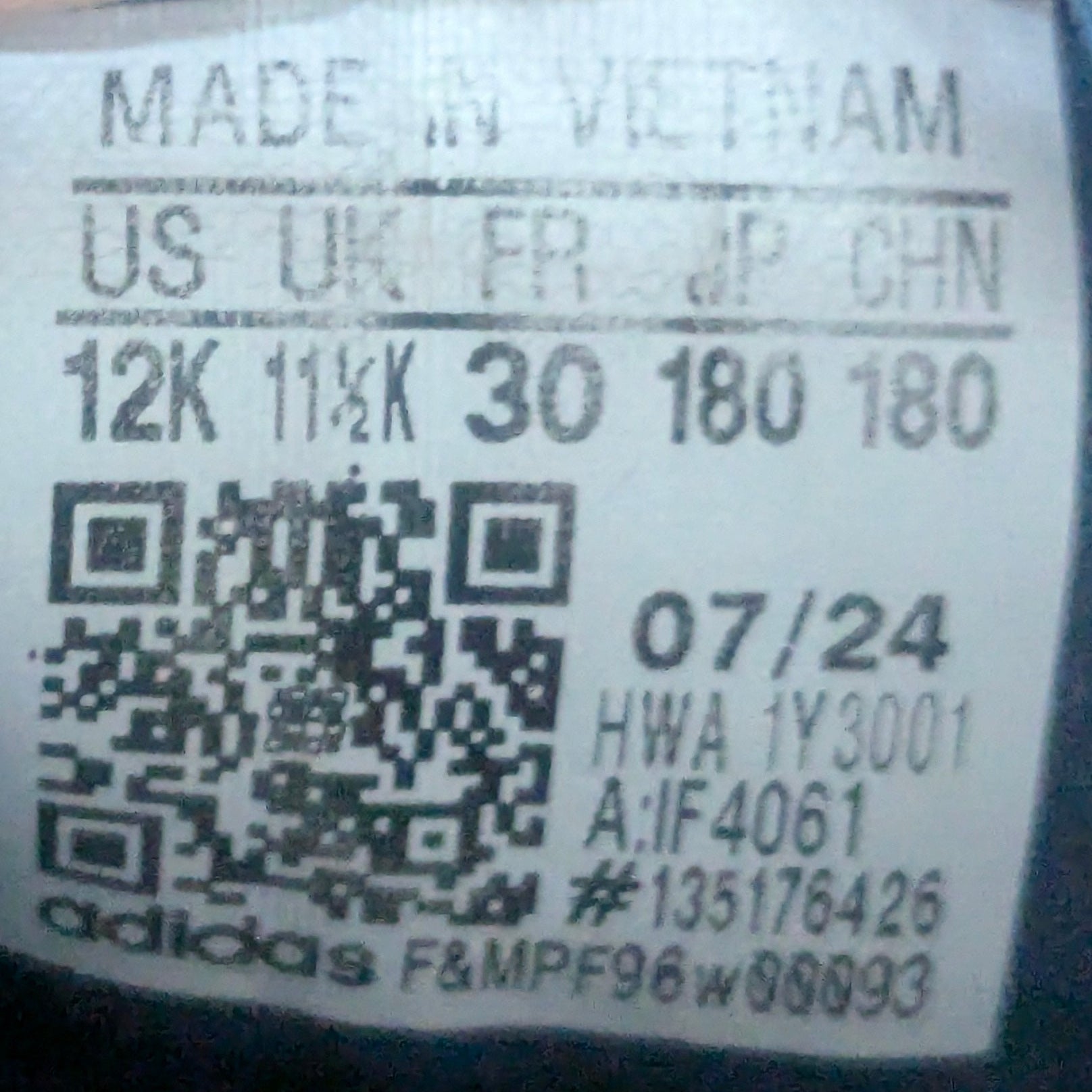 Shoe Size: EUR 30 / UK 11.5 / US 12 / 18 CM
