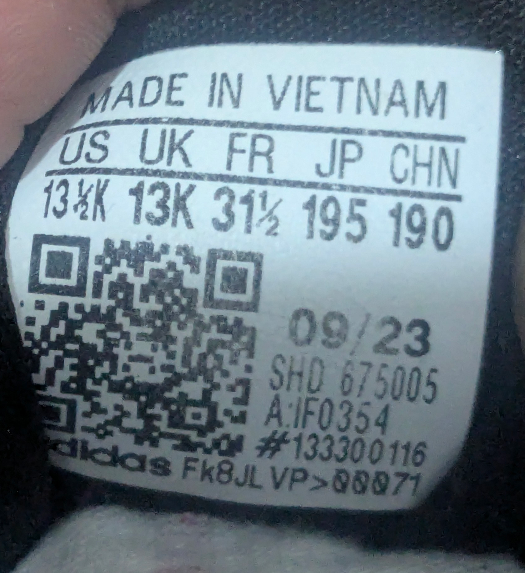 Shoe Size: EUR 31.5 / UK 13 / US 13.5 / 19.5 CM