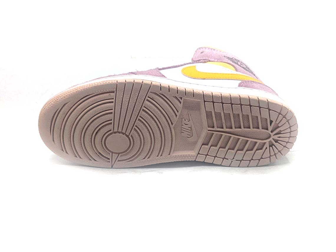 The Nike Air Jordan I is a classic basketball shoe that was originally released in 1985. It features a leather and synthetic upper with perforations for breathability, a padded collar and tongue for comfort, and a rubber outsole for traction. The shoe is known for its iconic design, including the "wings" logo and Nike swoosh.
