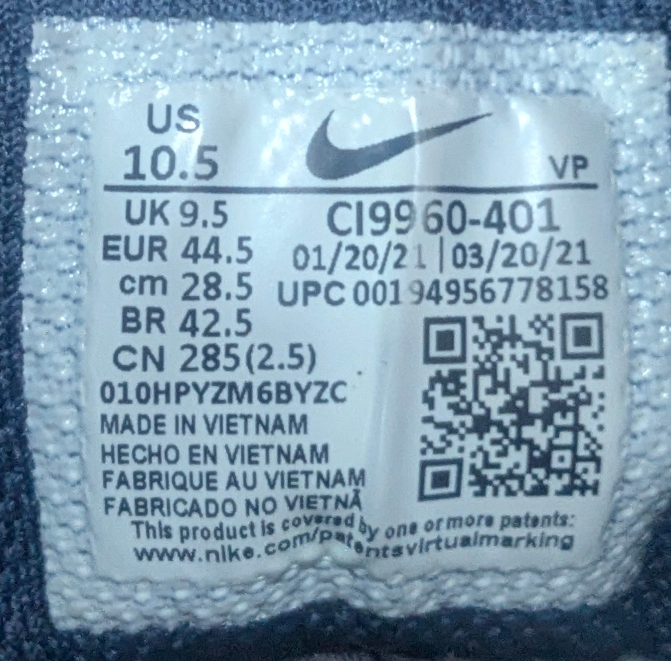 Shoe Size: EUR 44.5 / UK 9.5 / US 10.5 / 28.5 CM