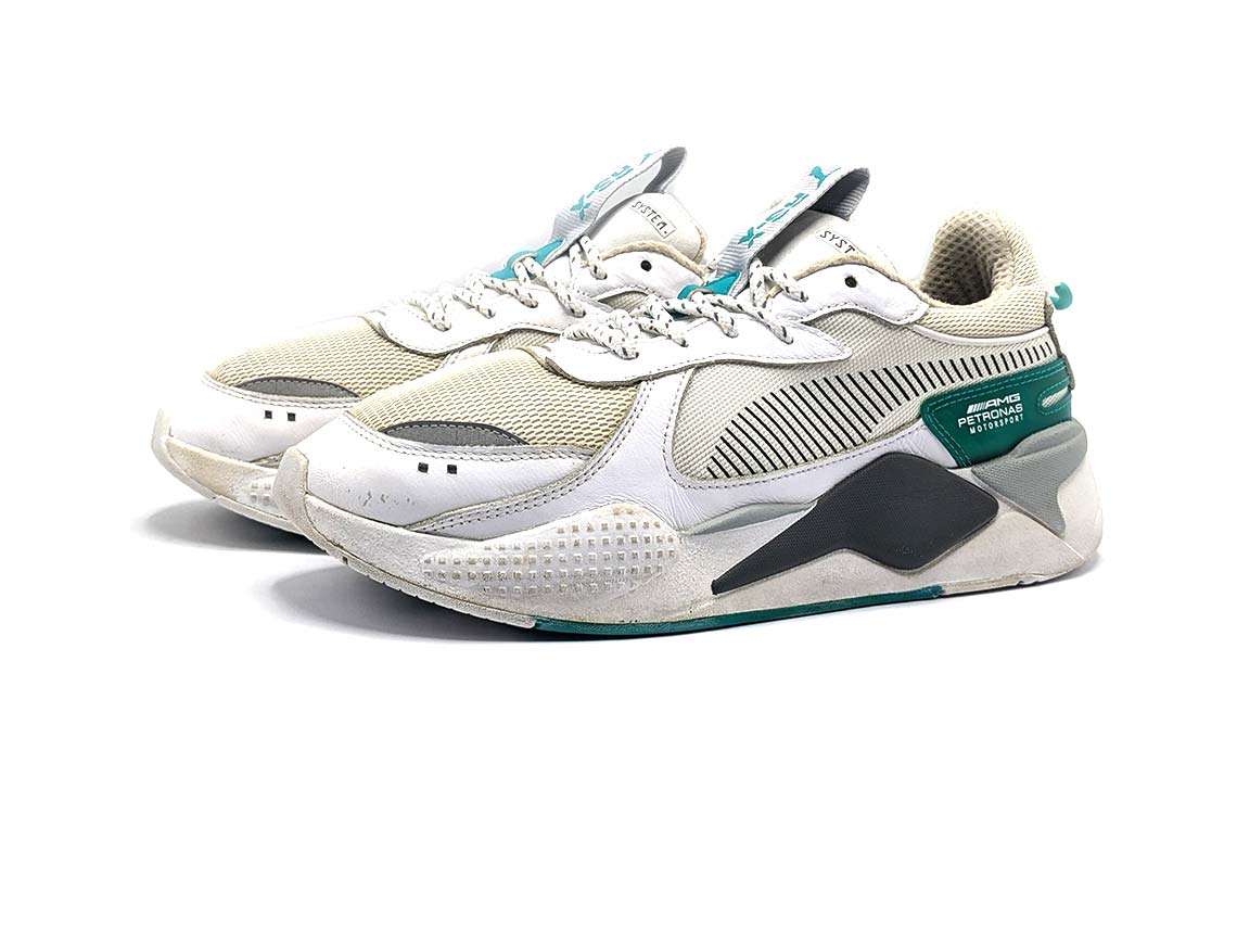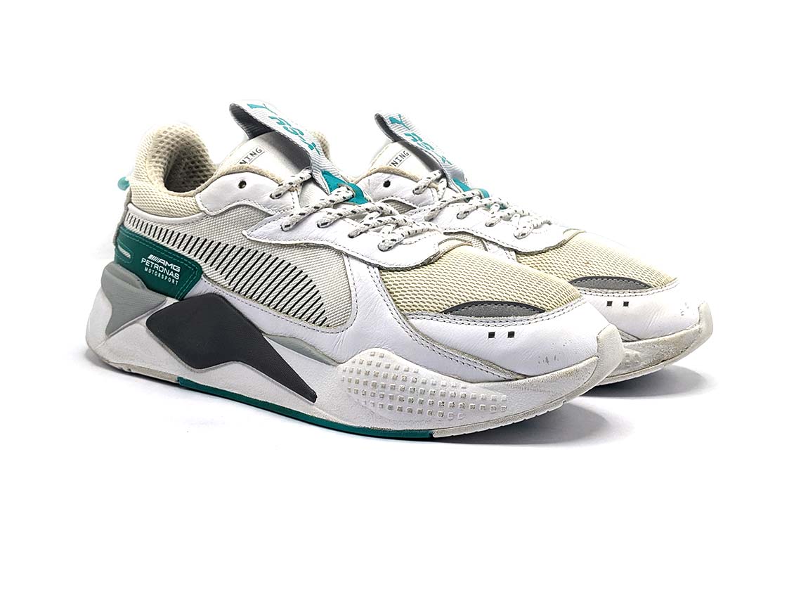 The Puma RS-X Mercedes is a dynamic sneaker that merges motorsport-inspired style with modern comfort. Featuring a bold design with premium materials, it boasts a mesh and synthetic upper for breathability and durability. The RS cushioning technology in the midsole ensures superior comfort and support, while the rubber outsole provides excellent traction. Perfect for fans of high-performance footwear, it delivers both flair and functionality.