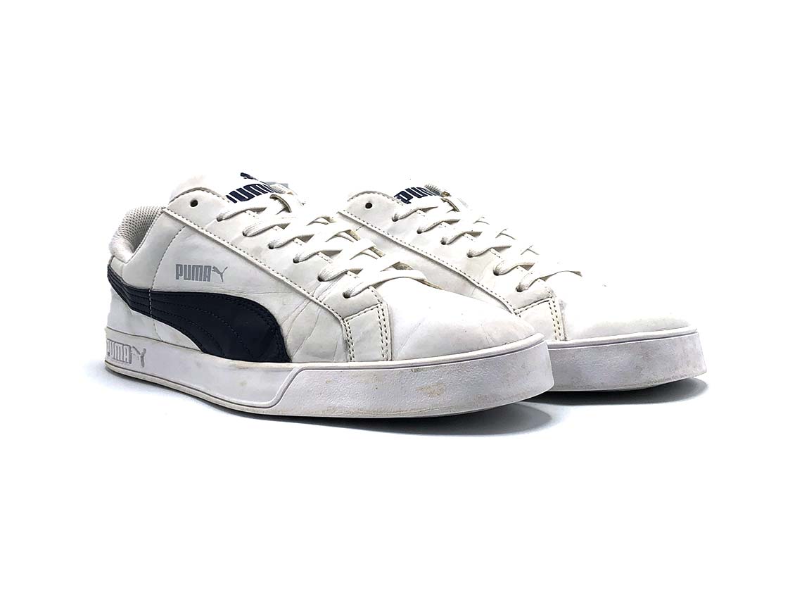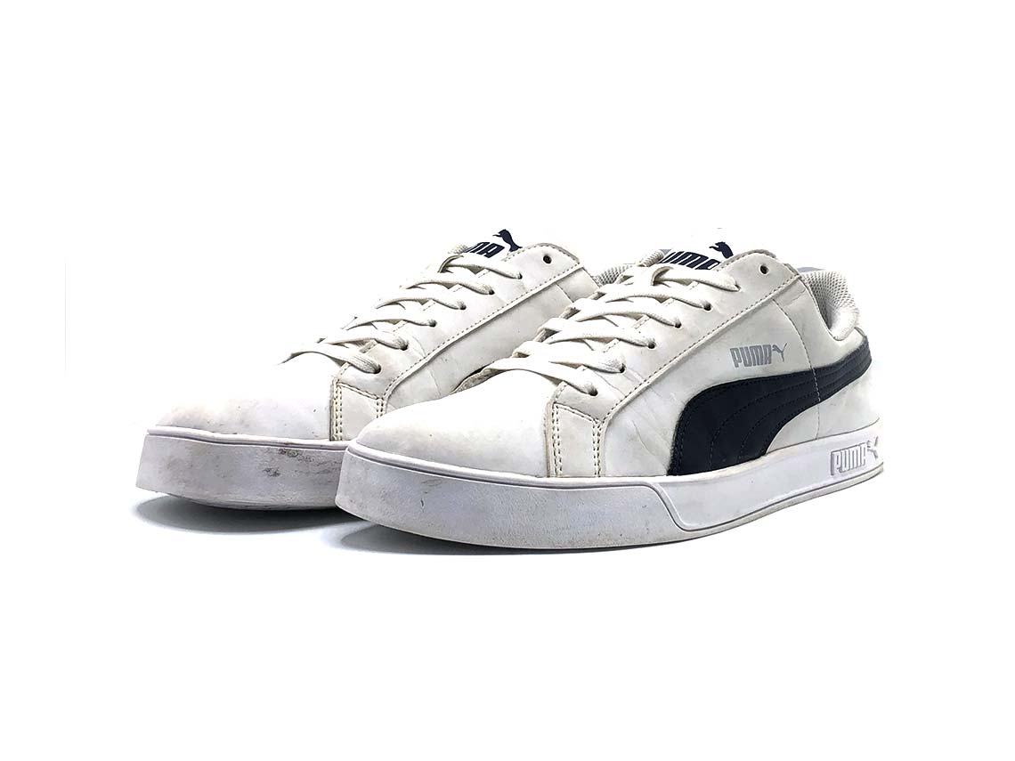 Introducing the Puma Smash sneakers, a timeless choice for casual elegance. Crafted with durable materials and featuring the iconic Puma Formstrip, these shoes offer both style and versatility. With their classic silhouette and cushioned footbed, they provide support for all-day wear. Step into sporty sophistication with the Puma Smash sneakers, perfect for adding a touch of flair to any outfit..
