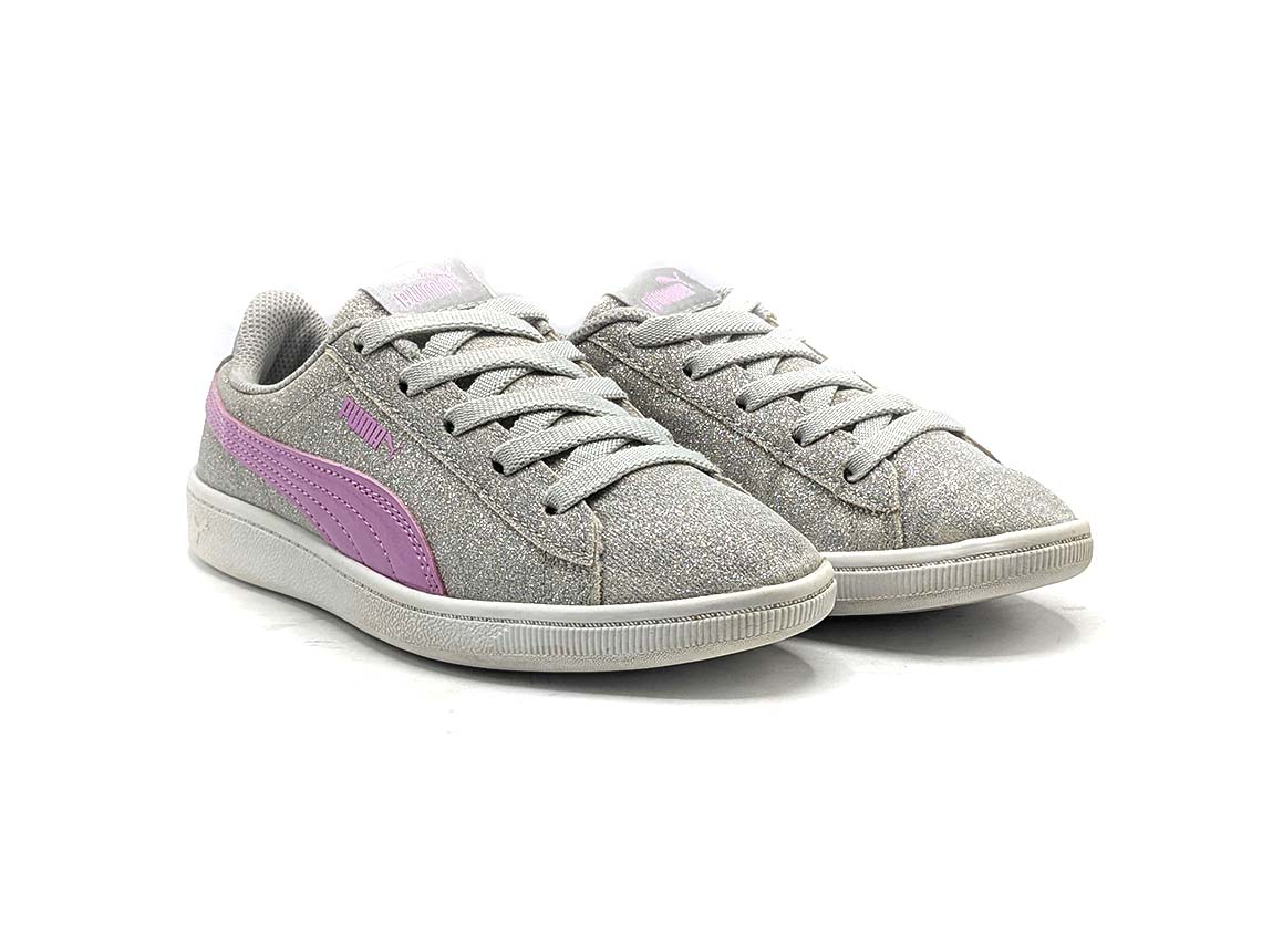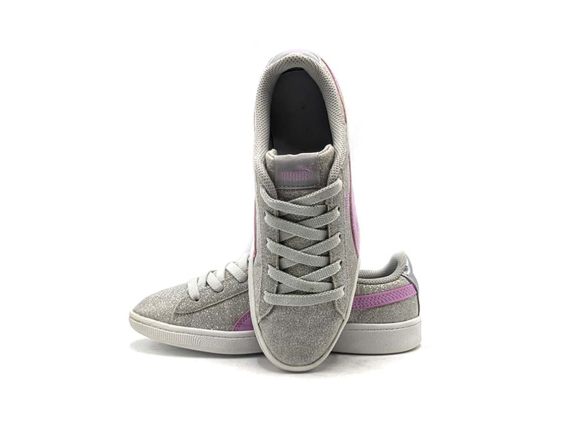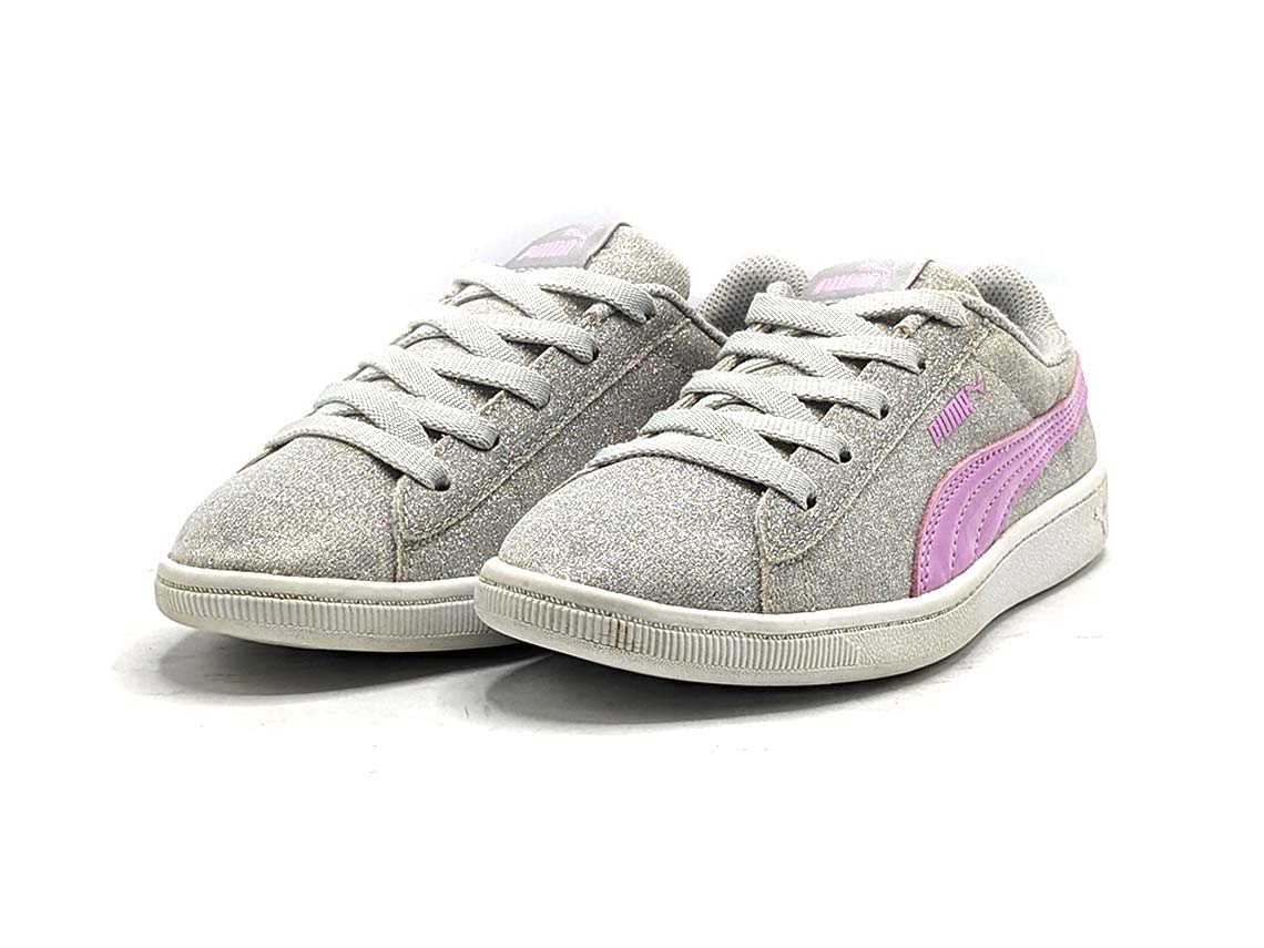 The Puma Smash V2 Glitz sneakers are a stylish blend of sporty and chic. Featuring a glittery upper with sleek overlays, these shoes add a touch of glamour to your everyday look. The soft foam sockliner and cushioned midsole ensure all-day comfort, while the durable rubber outsole provides reliable traction. With their versatile design and eye-catching details, the Puma Smash V2 Glitz sneakers are perfect for both casual outings and active lifestyles.