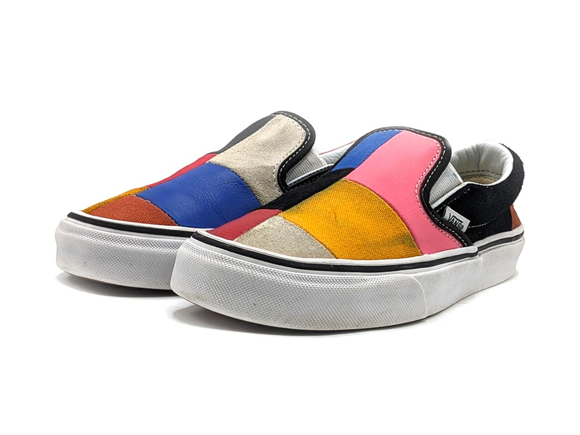 Experience the vibrant personality of the Vans Classic Slip-On Patchwork Multi-Color sneakers. With a unique blend of colors and patterns, these shoes are a true expression of individuality. The iconic slip-on design ensures easy wear, while the comfortable cushioning keeps your feet happy all day long. Embrace bold style and standout in every step with these eye-catching slip-ons. Elevate your look with the perfect blend of fashion and comfort – get your pair now!